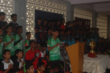 The 8 teams,dressed up in their spanking new kits,lined up in the school hall.Hanson David lead the players in the oath of good sportsmanship.