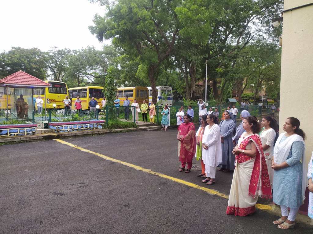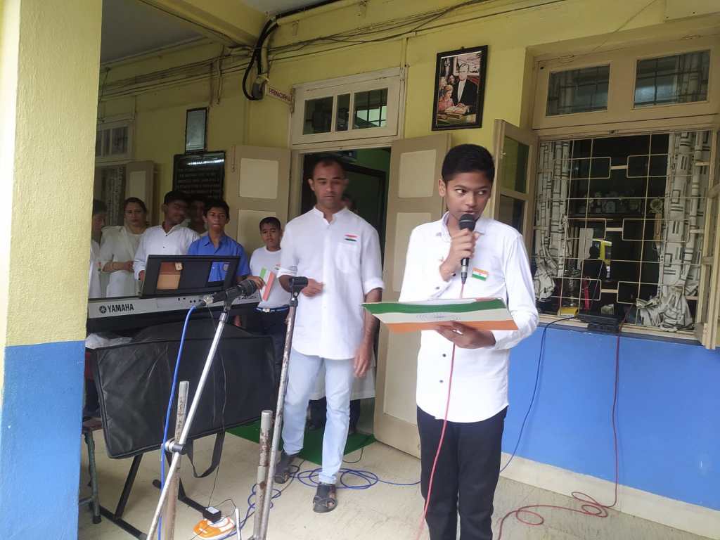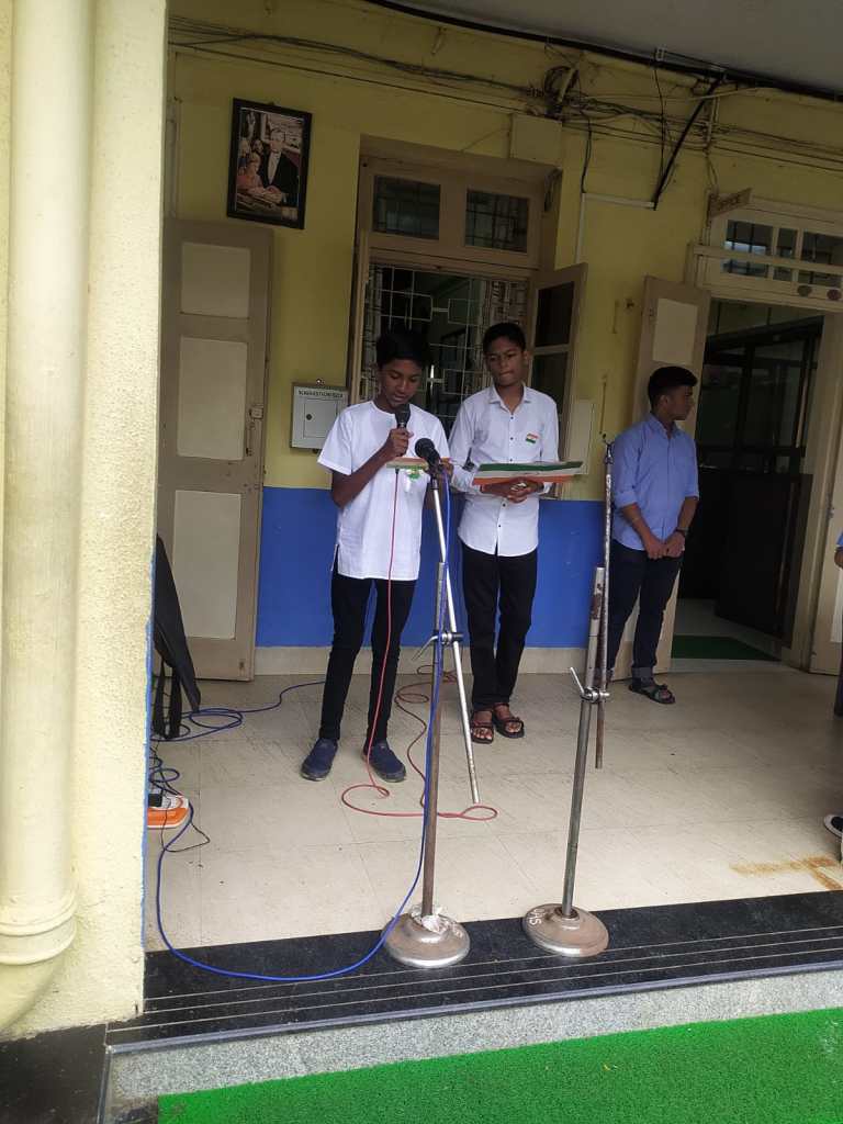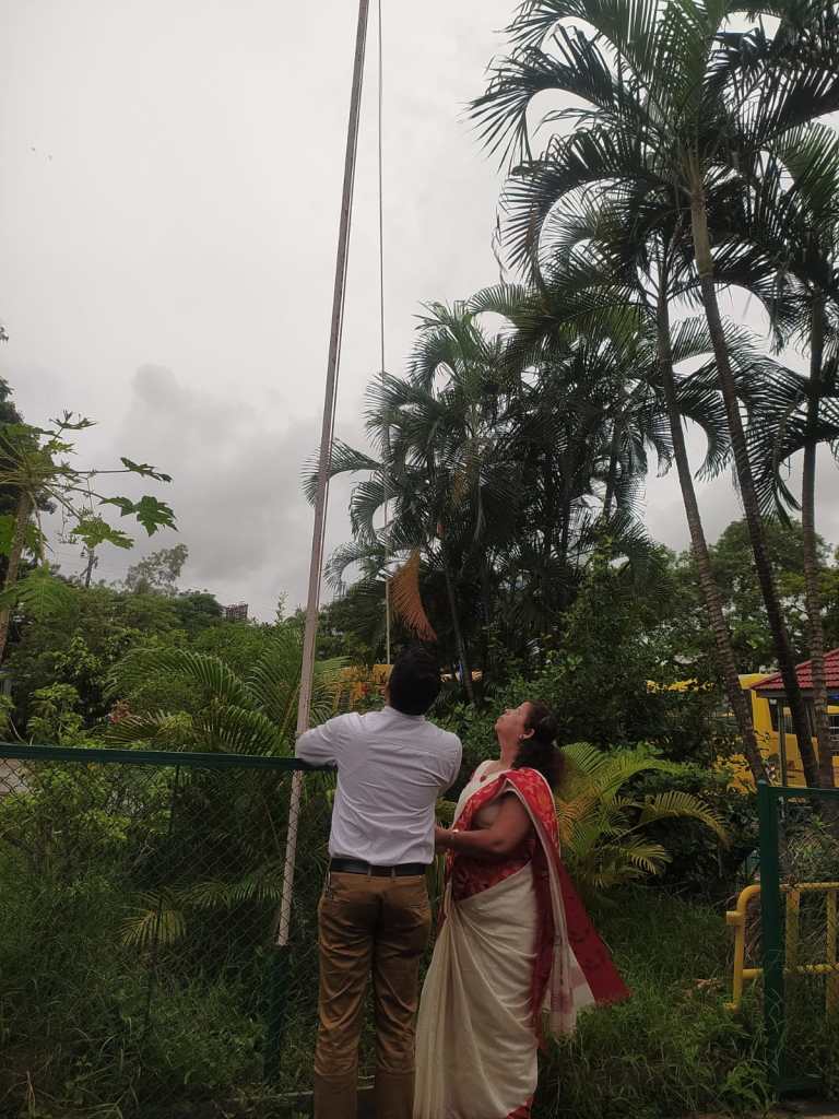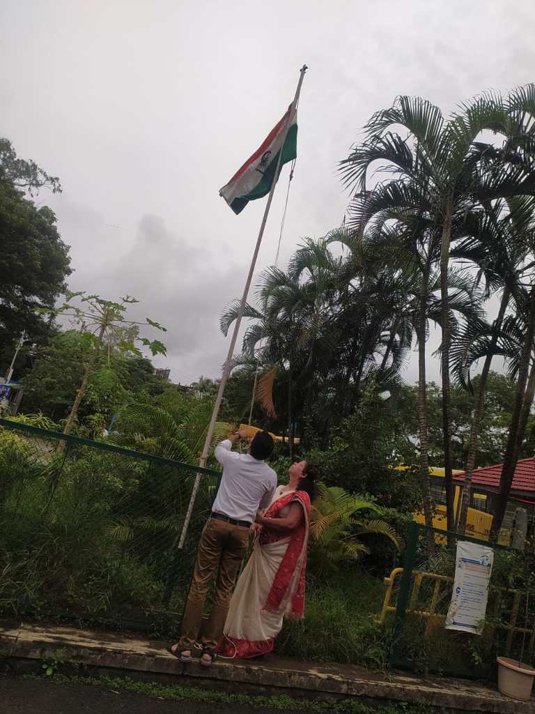 Secondary students entered their classrooms this morning to the sound of patriotic songs being played over the intercom.It helped set the atmosphere for celebrating 75 years of our country’s independence.At the ceremony outside the flag was raised by the seniormost teacher of our school Mrs Sybal Gonsalves.The rest of the program included an excellent speech by Aarush Rajput of class 8A,a beautifully rendered song by Sir Rostan and his group of singers and prayers of blessing for our country on this special day. The program concluded with all students reciting together Rabindranath Tagore’s beautiful prayer poem “Where the mind is without fear “