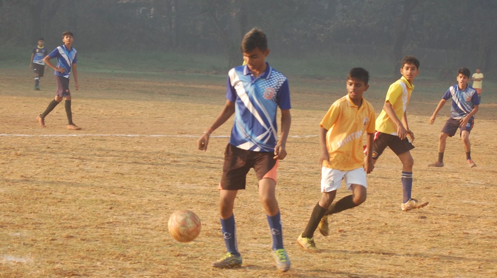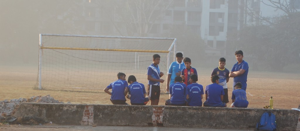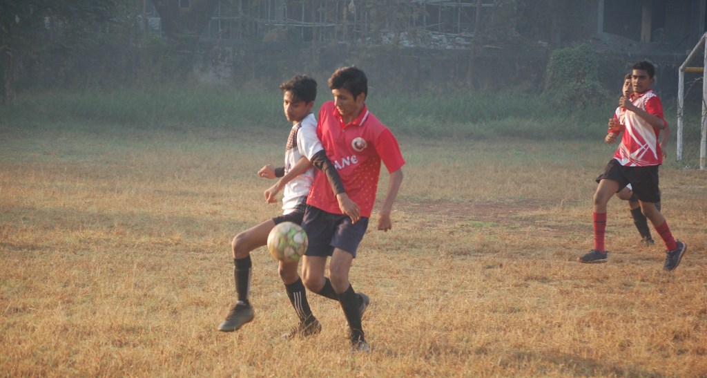 The much awaited resumption (paused since the 23rd of July) of the Correia Memorial Tournament 2022 finally took place on the 28th of December. The long delay was due to the fact that the field was damaged in the monsoon and was unfit for play. The rejoicing players gathered on the basketball court early morning as the sun rose over the trees that border the field.