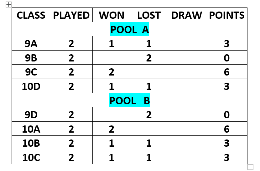 On the other field 10B beat 9D by 2 goals to one .Ethan,Gavin and Kartik were the goal scorers.Two more days of league games remain .