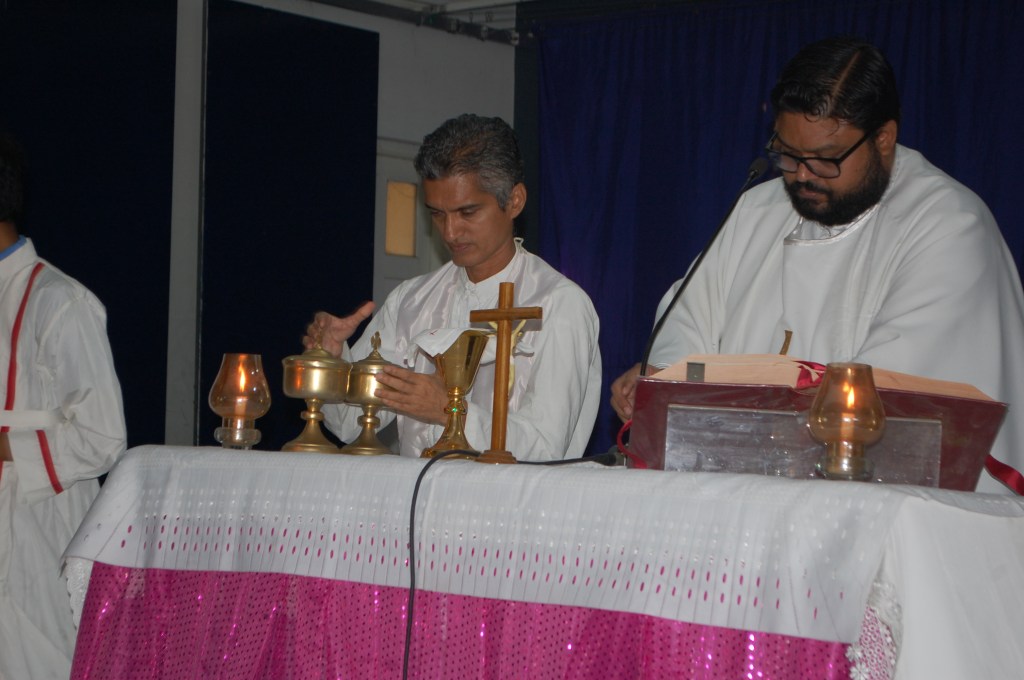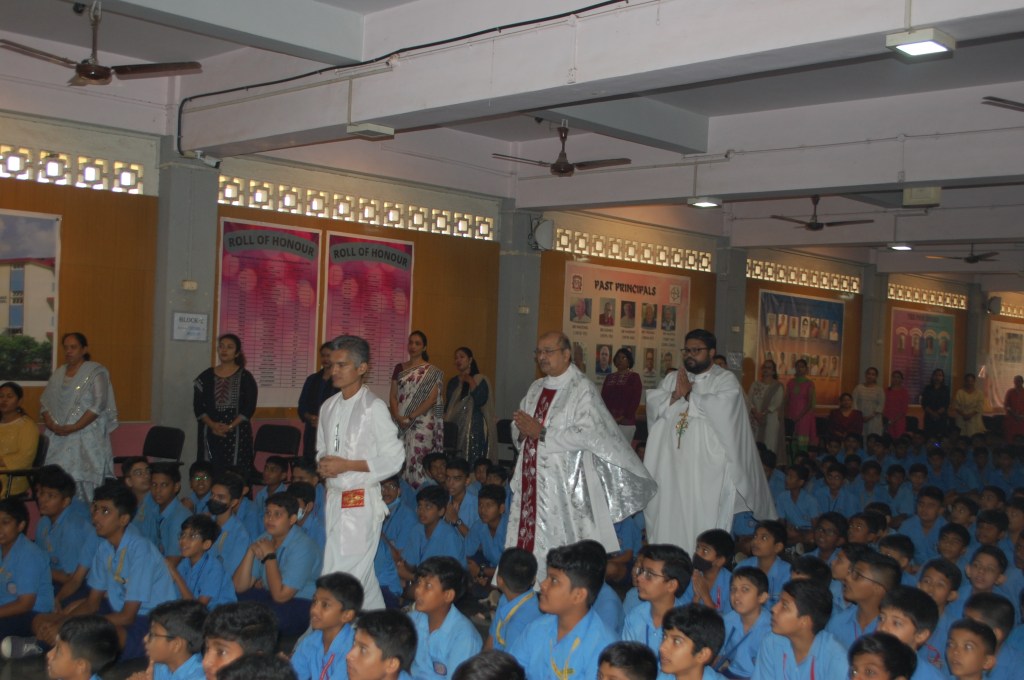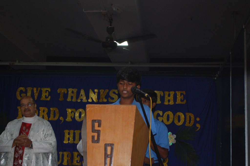 The 4 priests who concelebrated at the mass were all ex students of St Augustine’s School. Fr Rajesh (SSC 1987) Fr Lenoy (SSC 1994 ) Fr Robin (SSC 1978) and Fr Thomas (SSC 1995 ) led the gathered staff and students in prayer. Each of them shared how their years in St Augustine’s school had played a critical role in their formative years .They shared how the values nurtured in them in school had helped them to discern their priestly vocations. The sharing of these happy school memories surely made a positive impact on the gathered students.