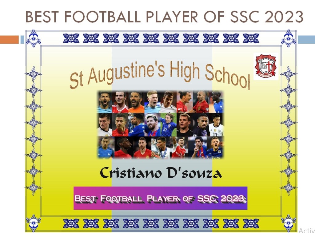 Cristiano had also been named one of the three Best Football Players of the SSC 2023 batch at the farewell ceremony held in school immediately after the SSC Exams.Well done Cristiano and all the best.