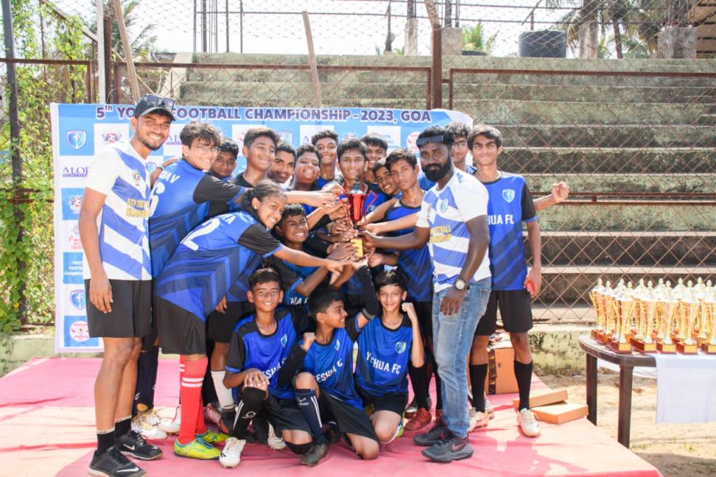 Kush Limbachiya, Kaushal Sankhe, Krishna Kori, Aden Philips and Pranav Sule from SAS took part in the 5th Youth Football Championship organised By Palkaya FC & Yeshua Sports Foundation in Calangute, Goa.