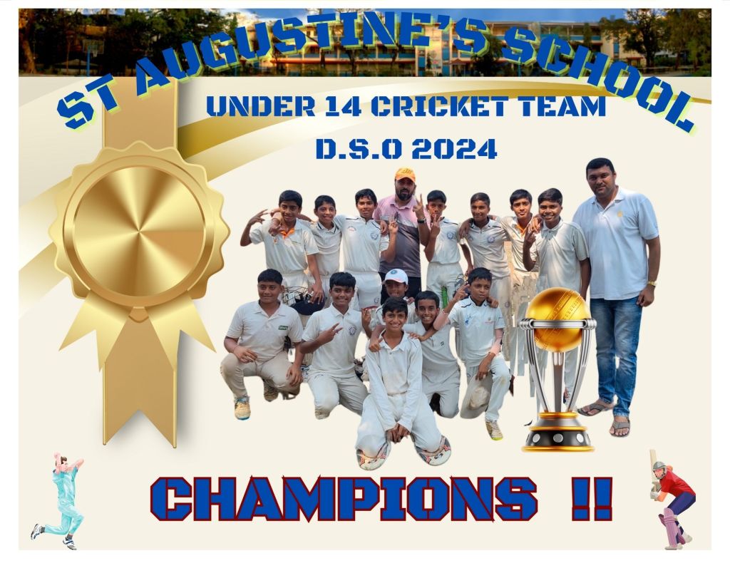 The St Augustine’s under 14 teams have completed an unprecedented hat trick of DSO levels wins. The U 14 cricket team are DSO level champions.They reached the finals by defeating John the 23rd School,Agashi in the semi finals. In the finals they chased down the target set for them by Jesus and Mary School Pali and won by 10 wickets.Their victory saw them joining the previously victorious Under 14 Football and Basketball Teams.(The last time we won the DSO level cricket tournament was 10 years ago.)