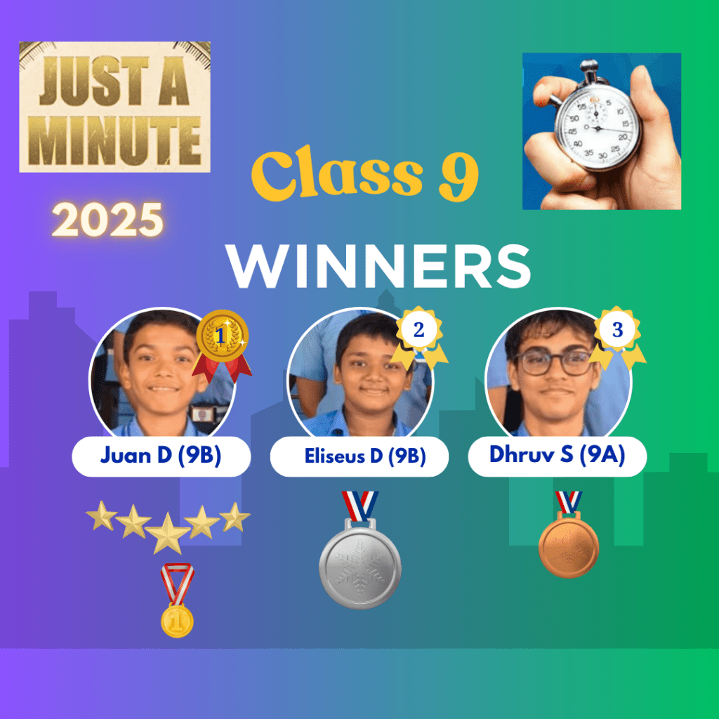 CLASS 9 Juan Dsouza is following in the footsteps of Lance. He came first last year and came first this year too. Winning next year will see him equalling Lance’s hat trick of titles. Eliseus and Dhruv gave him tough competition and took second and third place respectively.